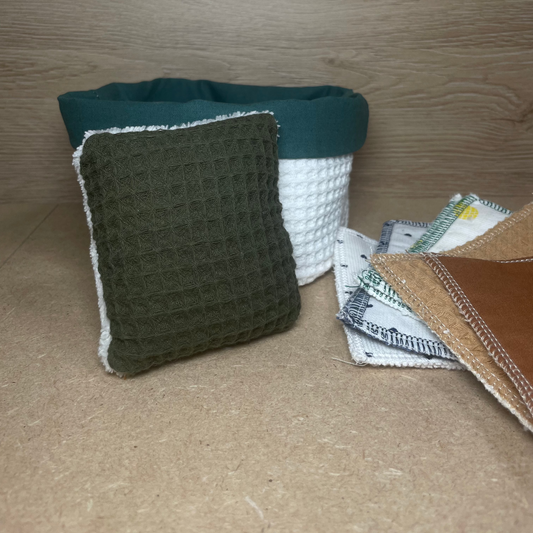 Lot panier démaquillant n° 3- Kaki & Nid d'abeille